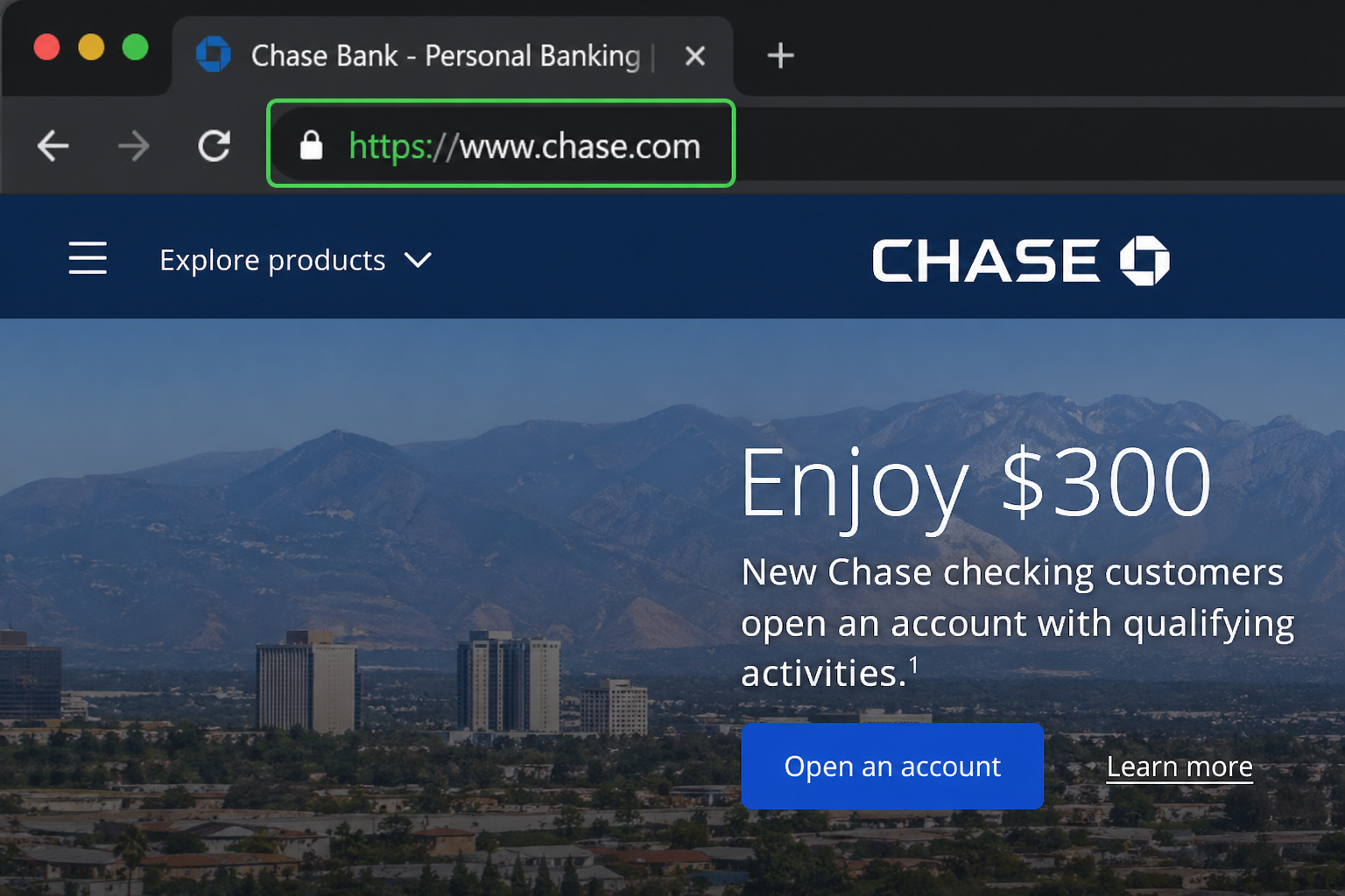 Check that the URL begins with https:// and displays a padlock icon in the browser address bar.