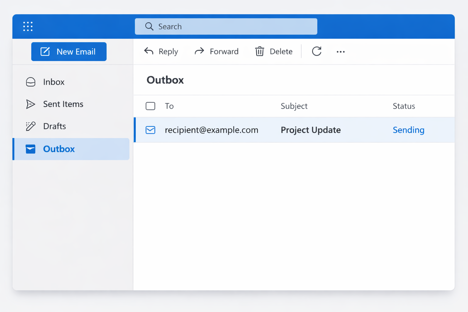 - Emails can get stuck in the Outbox. Try resending the email or moving it to Drafts and sending it again.