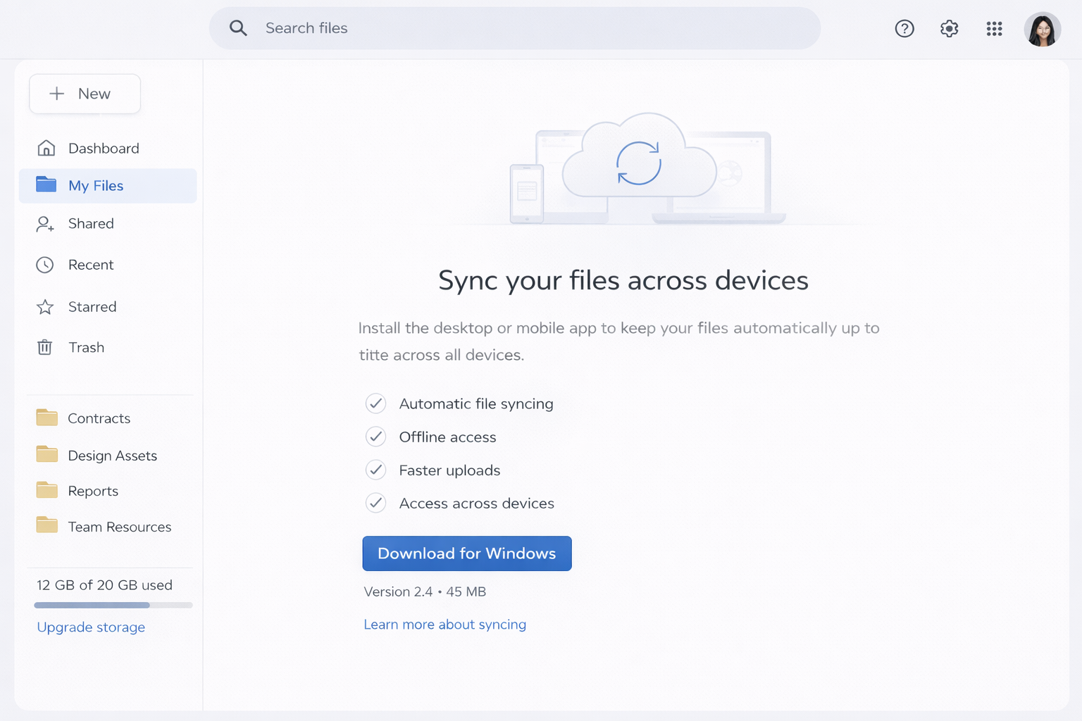 Businesses managing large volumes of files can enable selective sync to prevent local devices from storing unnecessary data.