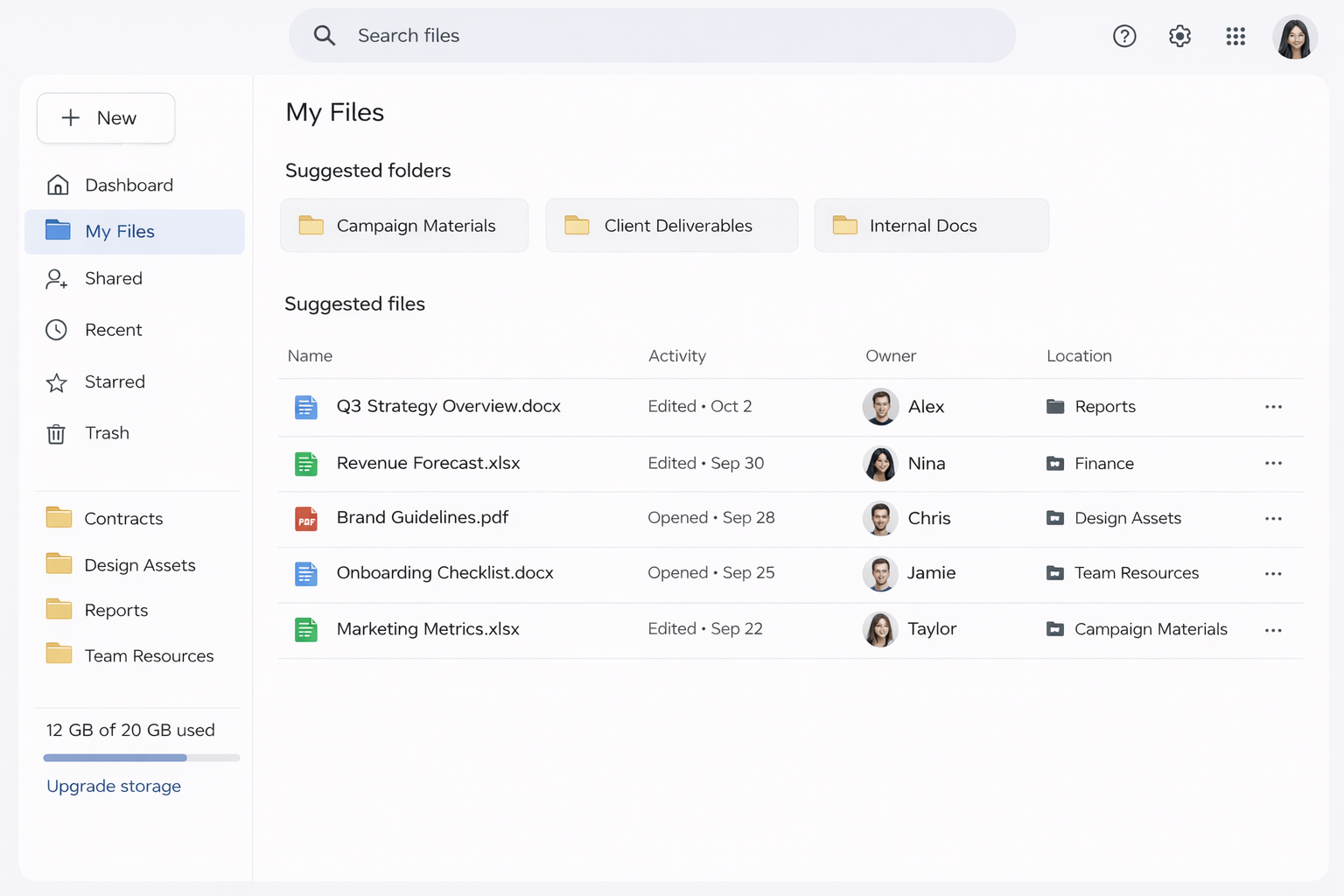 Start by uploading essential documents such as contracts, reports, and operational files.