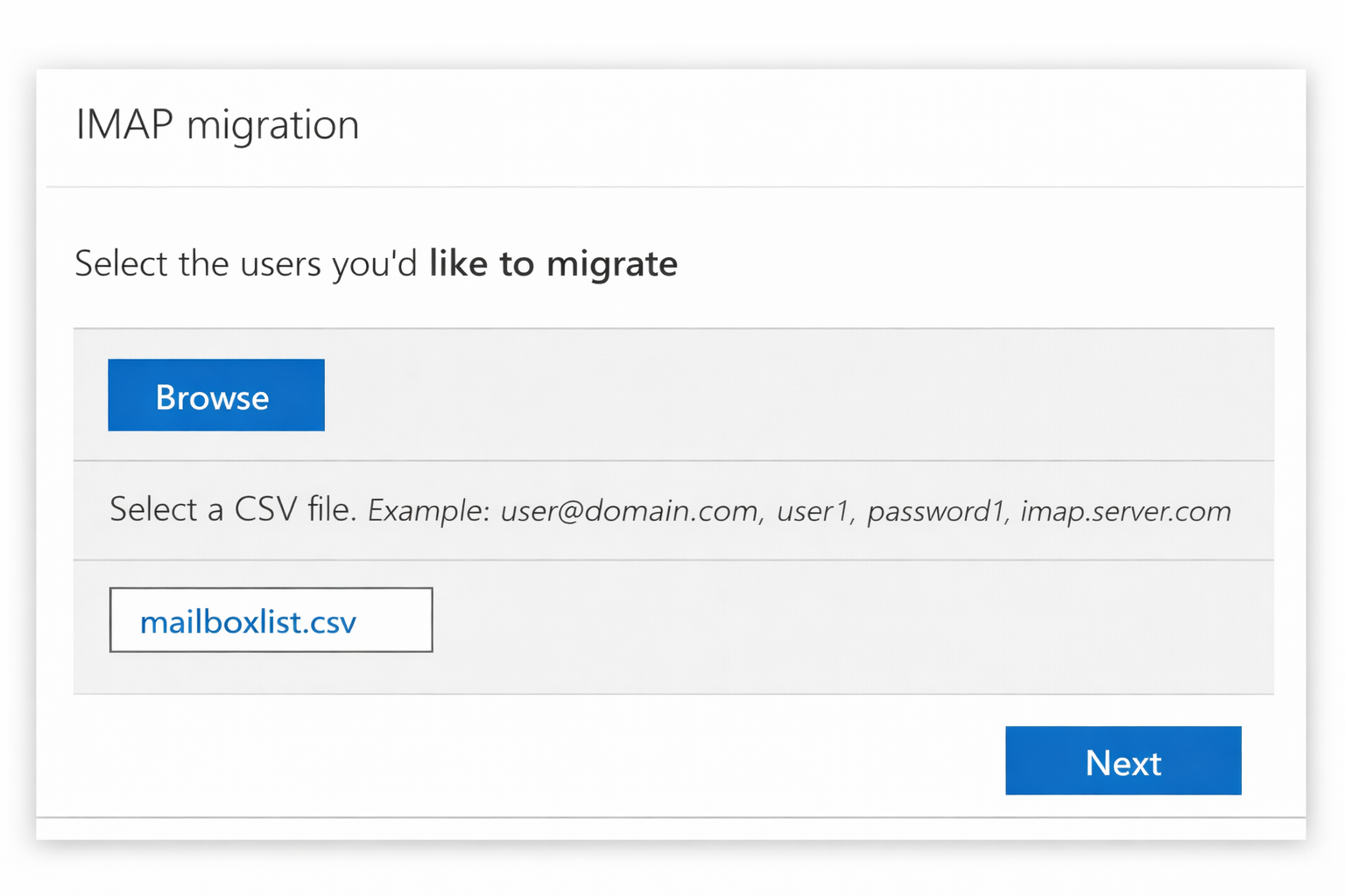 Each mailbox must exist in Microsoft 365 before migration can begin.