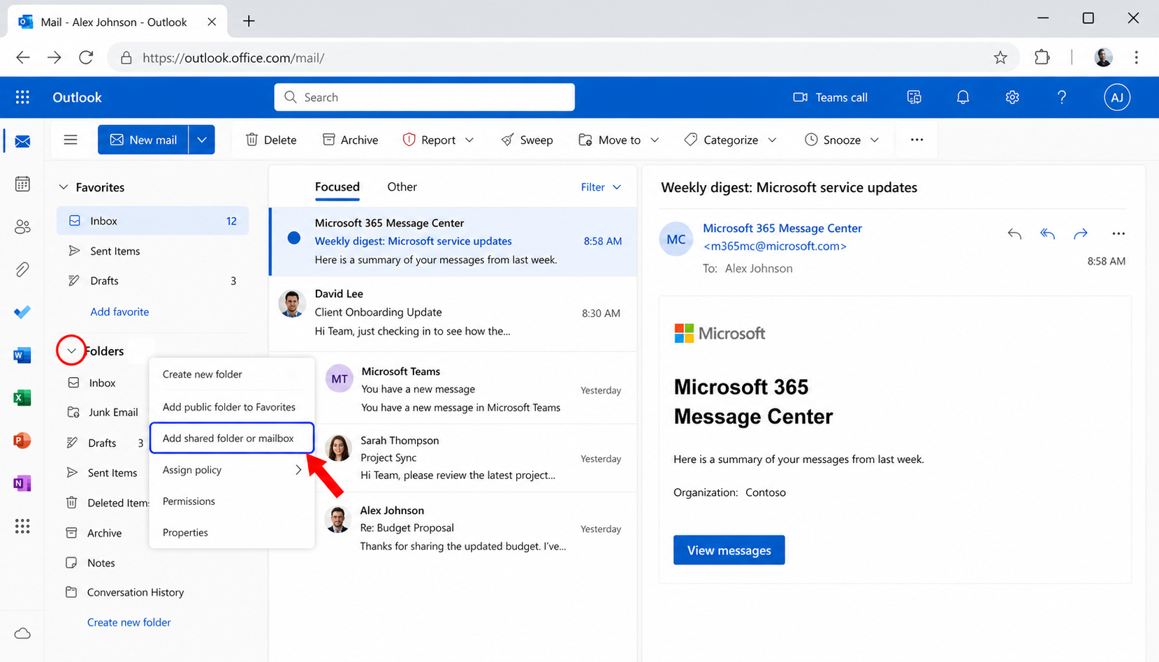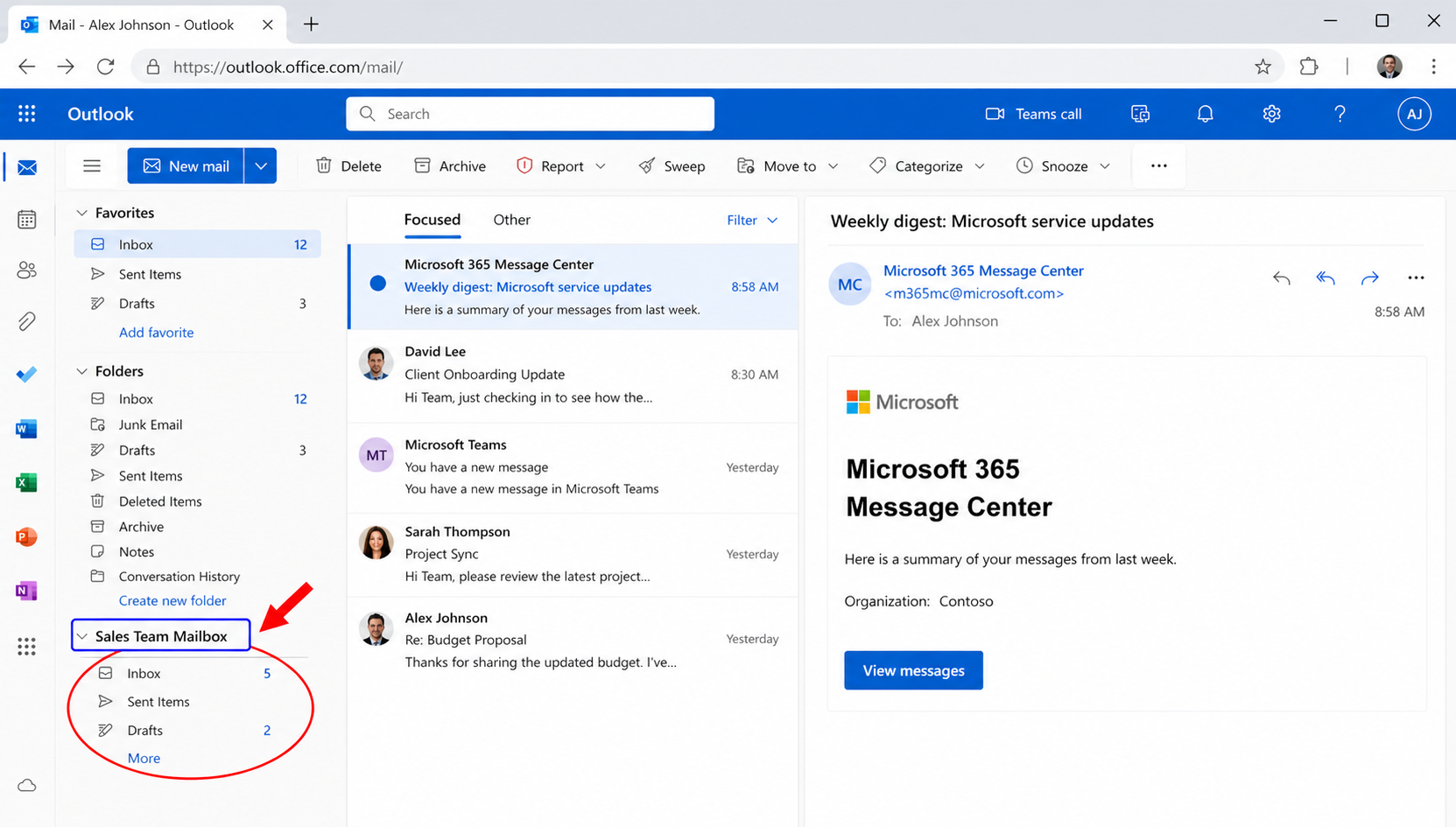 - Use search filters inside the shared mailbox to quickly find messages.