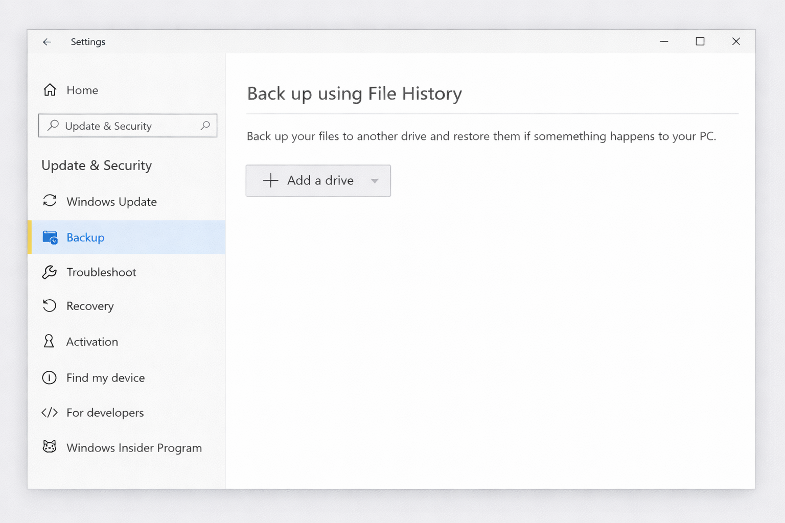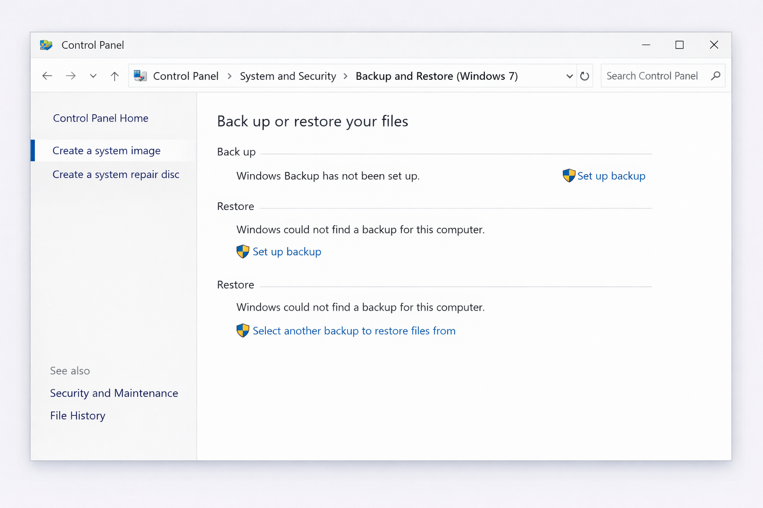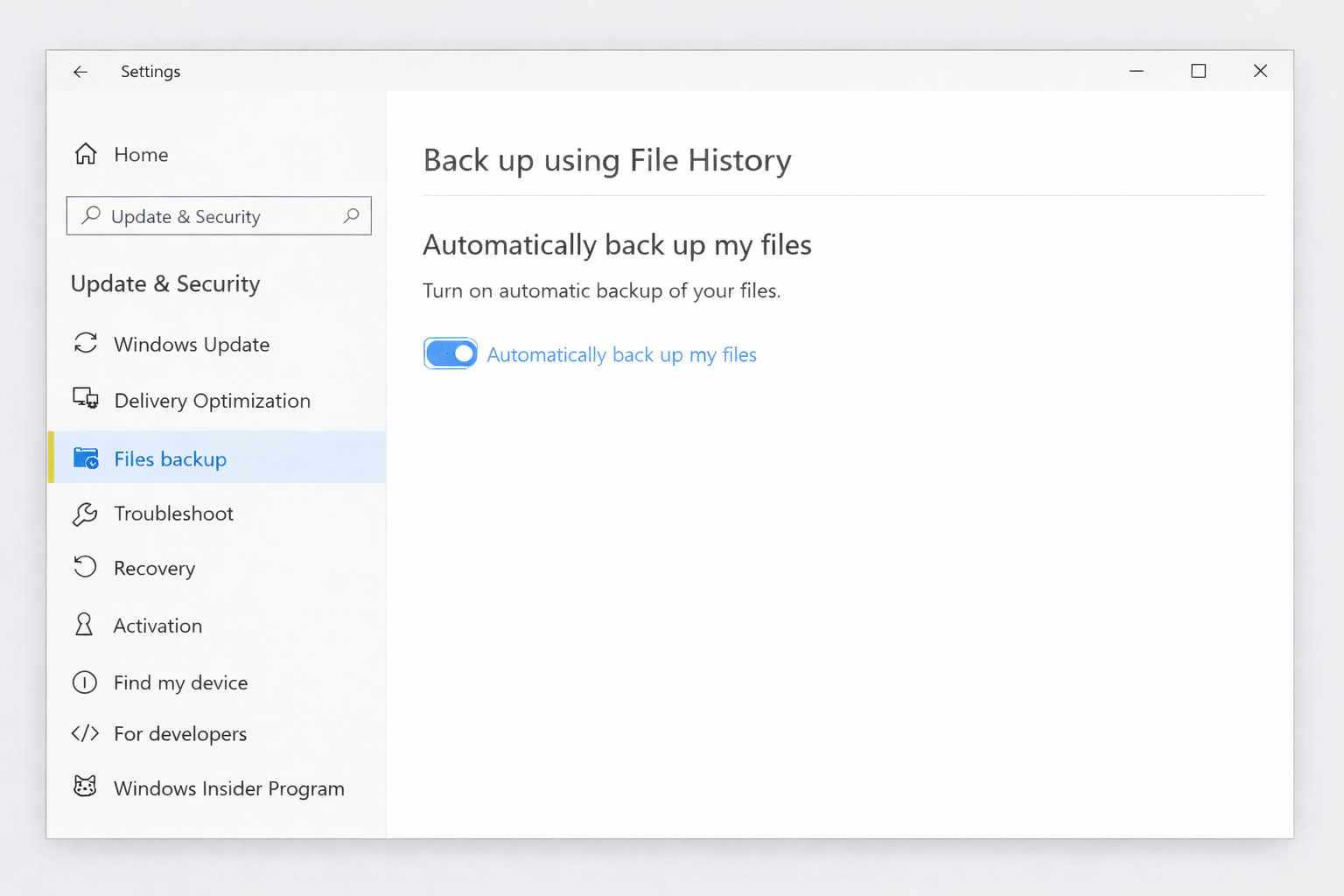 Accidentally deleting files or experiencing a system crash can result in lost data. Windows includes built-in tools that automatically back up your files so they can be restored if needed. This guide explains how to enable automatic backups using File History or create a full system backup for additional protection.