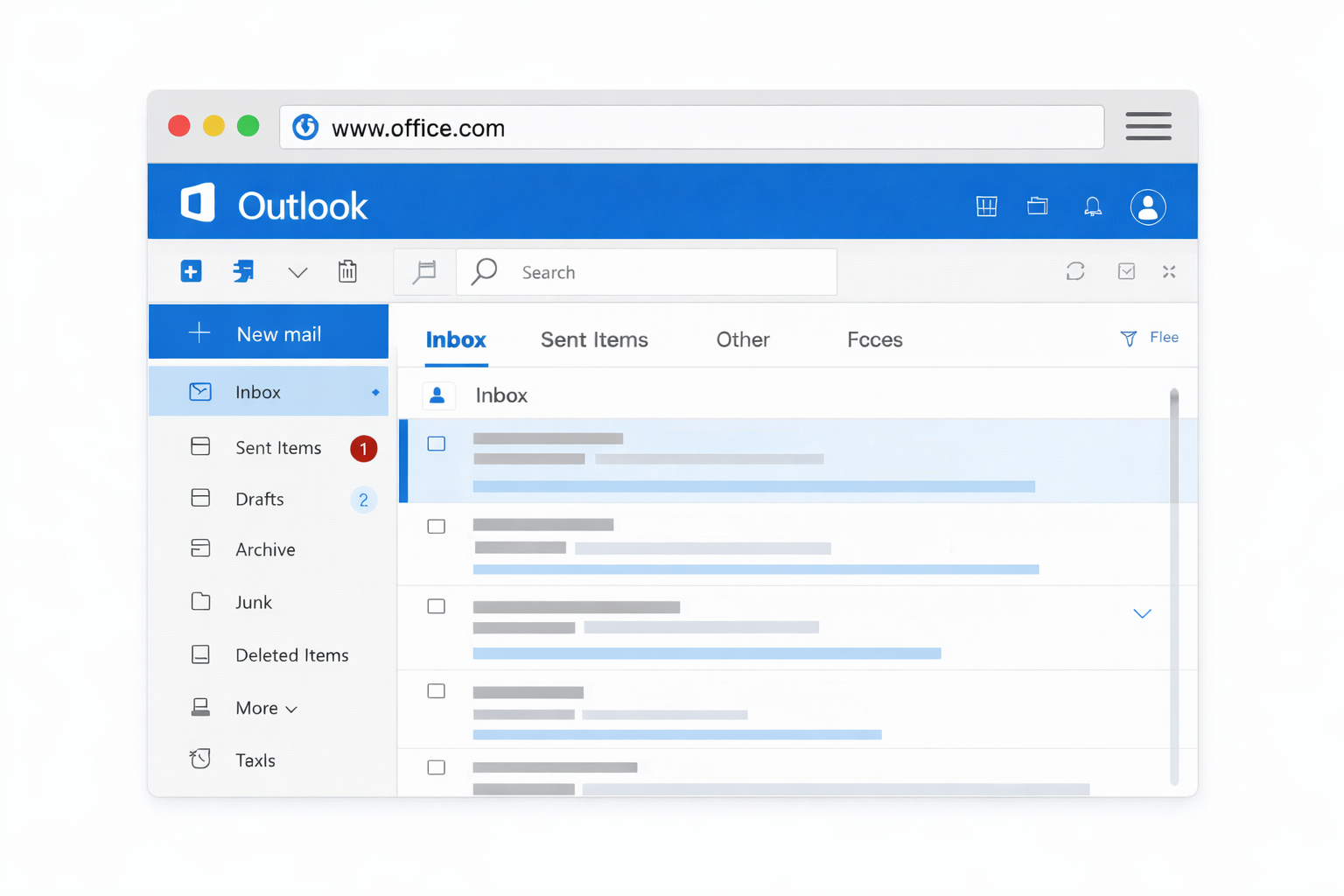 - Your mailbox will open, showing your inbox, sent items, and folders